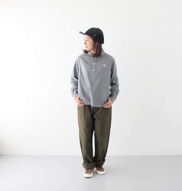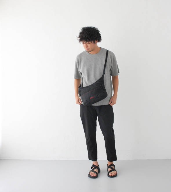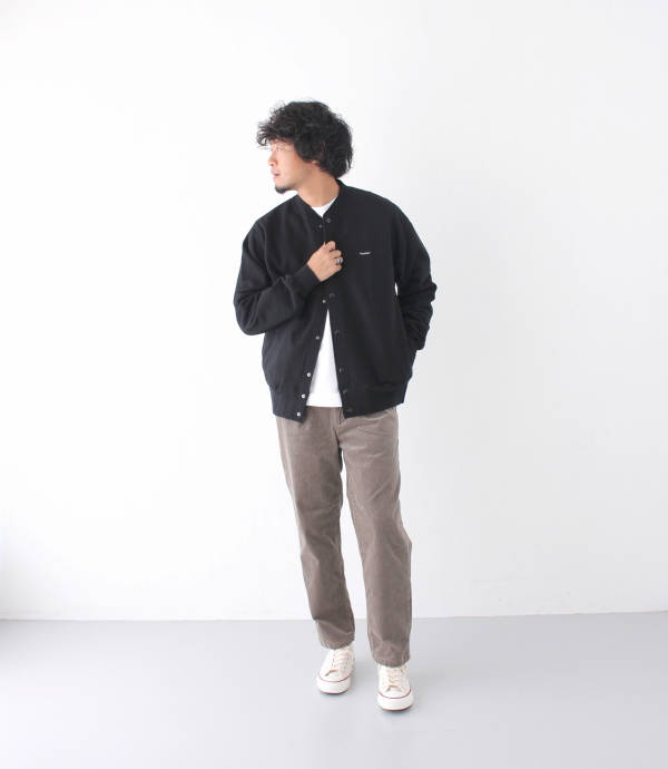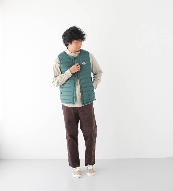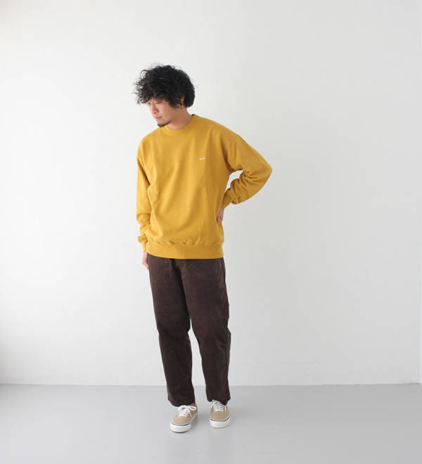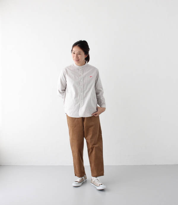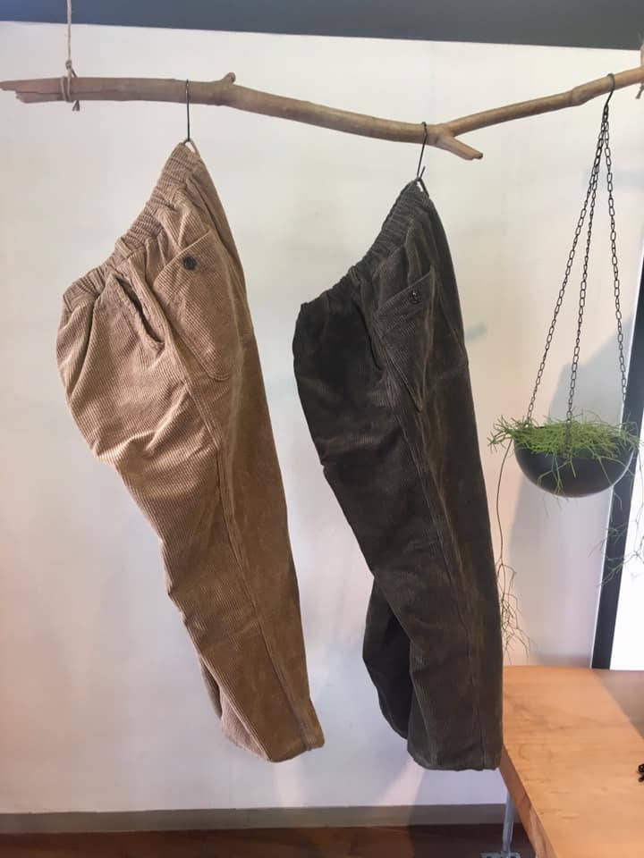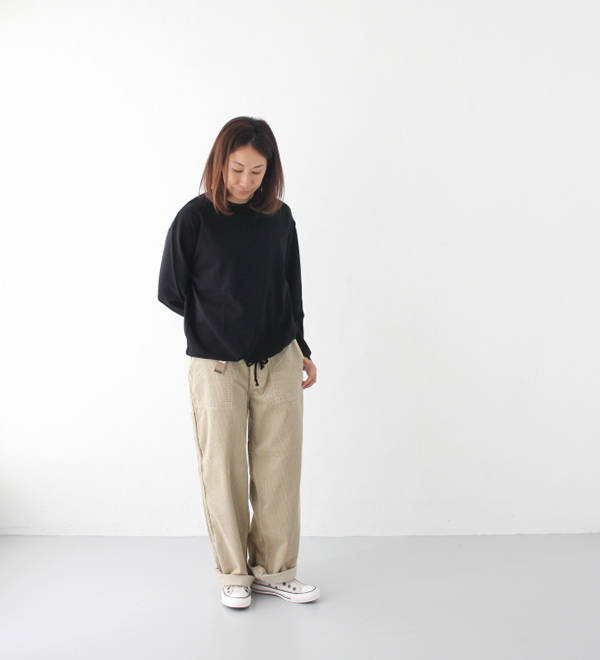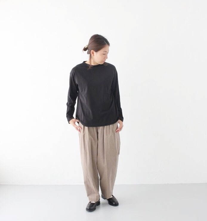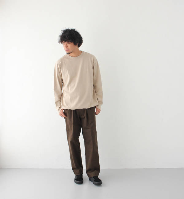 パンツはウエストがゴムの2タックになっており、ヒップには余裕がありテーパードしている形でとても合わせやすいパンツになっております。