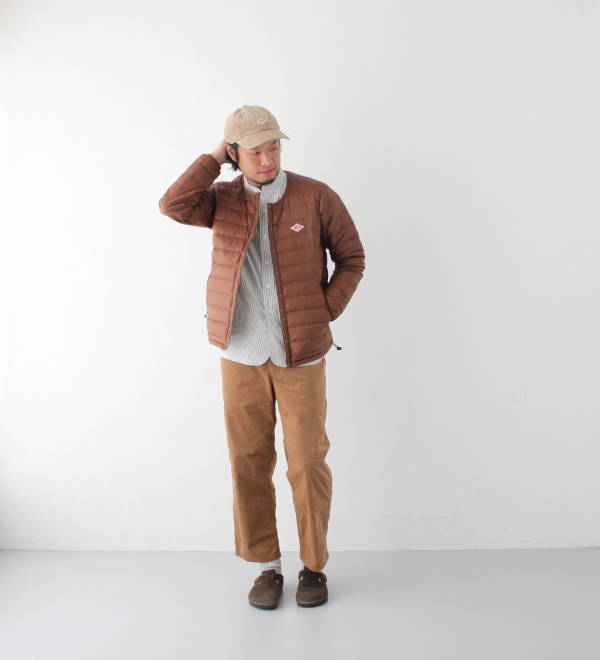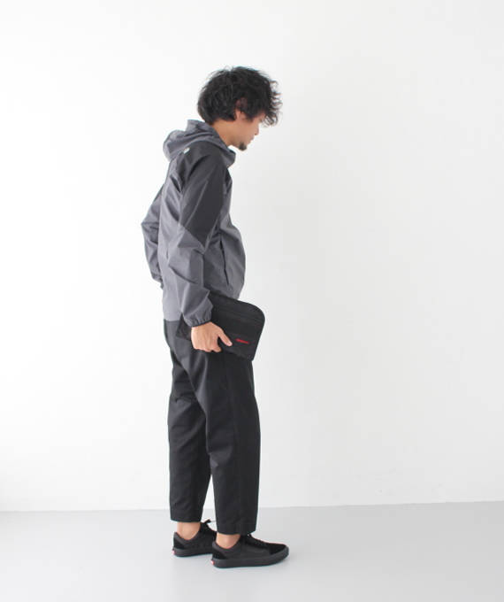 アウターはプルオーバーのパーカーで撥水性と防風性を兼ね備えており、肉感のあるこの時期に着やすいアウターとなっております。