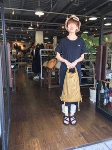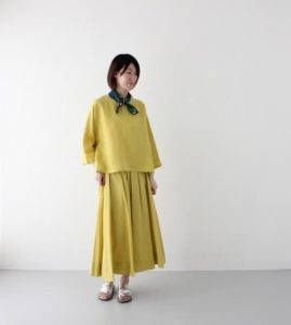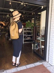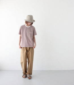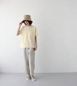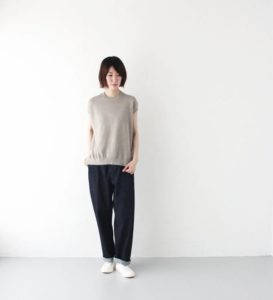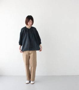 パンツはワイドスラックスになっており、こちらも素材はコットンリネンになりますので夏場もはけて程よいボリューム感があります。
