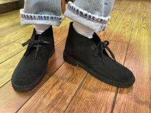 2つハトメのレースアップ、磨き上げたレザーの風合い、そして温かみを漂わすクレープソールが特徴の一足です。