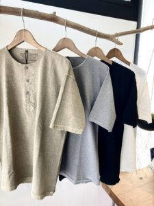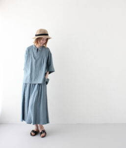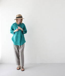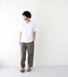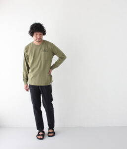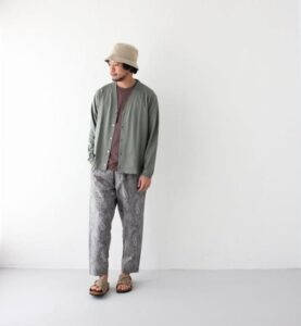 今日はOMNIGODよりリネンキャンバス素材のスタンドカラーワークシャツとイージーパンツの