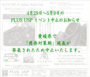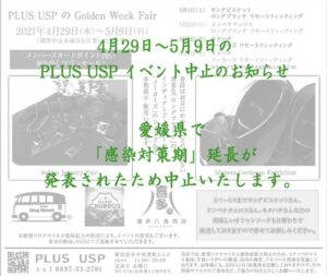 ※ 現在配布中のホージャ広告で掲載しております、PLUS USPゴールデンウィークイベントは愛媛県の新型コロナウィルス感染症拡大とまん延防止等重点措置を受けまして、全て中止とさせて頂きました。