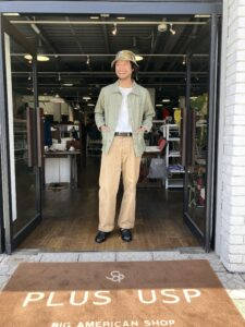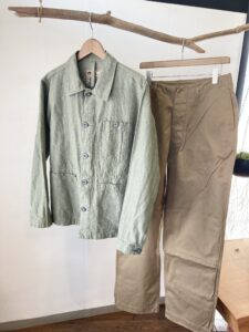 ジャケットはコットンリネンの素材で剛性と耐久性に優れており、ボディーのベースはワークジャケットになっております。