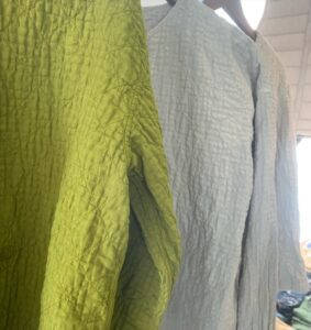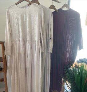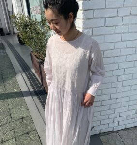 キルティングシャツシリーズに刺繍ワンピース、ピンタックワンピースと少しずつ入荷しております。定番の綿麻クロップドワイドパンツも今季はデニムブルーとブラックが入荷しております。