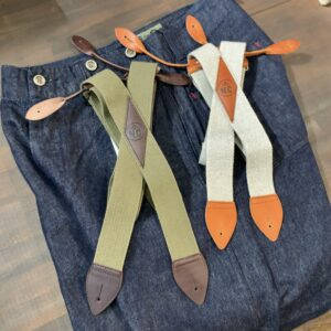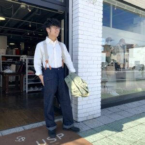カラーも3色あり、どのカラーもパンツ、サスペンダーとの相性も抜群です。パンツはコットンリネンデニムで縦糸にコットン。横糸にリネンの交織です。こちらも履き込めば味わいが増すので愛着が湧くこと間違いなしです!
