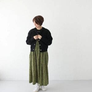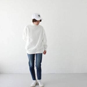 バストや袖にゆとりを持たせたワイドなシルエットですが、着丈を少し短めに設定することですっきりとした印象に。