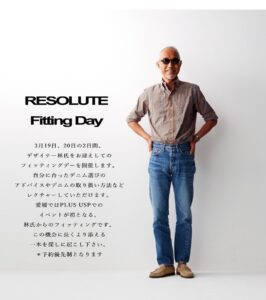 また、19日(土)、20日(日) RESOLUTE(リゾルト)フェア、林氏によるフィッティングデーのご予約可能枠もまだまだございますのでメール、お電話などでのご連絡もお待ちしております。