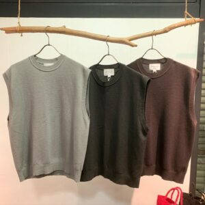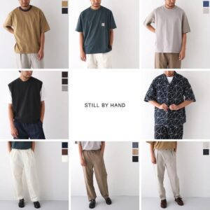 今日は「STILL BY HAND」からTシャツとベストの紹介です。ベストはシルク混で柔らかく、身体のラインを拾わない編み地を採用しており、ゆったりとしたサイズ感。Tシャツもシンプルですがとても綺麗な素材感でドロップショルダーのデザイン。ゆったり目なベストのインナーTシャツには抜群の組み合わせです。