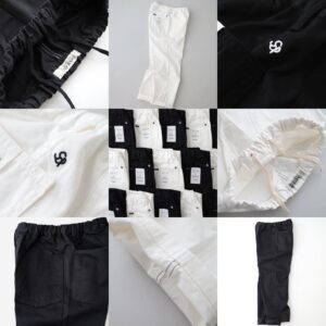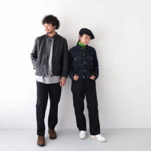 そんな生地を使用し、30〜40年代のアメリカ軍ワークパンツをベースにウエストに紐とゴムを入れリラックスパンツに仕上げたもの。