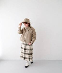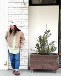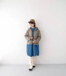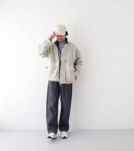 こちらのアウターは防水性、防風性に優れ、内部にこもった湿気を外に逃がす透湿性も兼備、雨の日にも羽織れる一枚です。