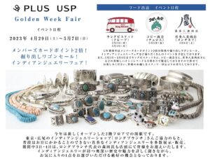 本日より、PLUS USP店舗では、 Indian Jewelry Fair といたしまして、Golden week Fairを開催致します。