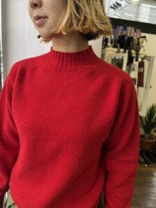 飽きのこないシンプルなデザインとラムウールの優しい着心地が人気で色違いで揃えていきたくなるアイテムです。