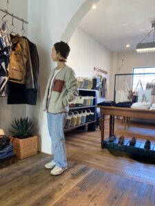 合わせたアウターはBARACUTAのG10の後継品番G12。バラクータといえばG9が代表的ですがこちらのG12はクラシカルでゆったりとした104cm丈のバルマカーンコートで女性にも着用していただけます。着丈・身幅ともにモダンなフィッティングにしたNEW MODEL。