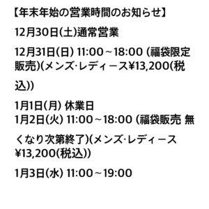 【年末年始の営業時間のお知らせ】