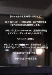 12月31日(日) 11:00〜18:00 (福袋限定販売)(メンズ・レディース¥13,200(税込))