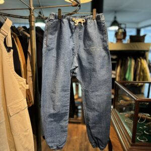 ジーンズは定番的なスウェットパンツのシルエットに、ウエスト、裾にゴムが入り、イージーに着用できます😁 股にはマチが付き、本格的なVINTAGE SWEAT PANTSの縫製仕様に仕上げられています。