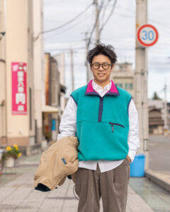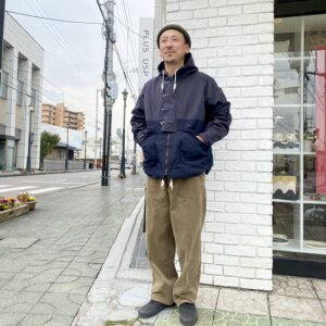 クラシカルな印象のコーデュロイ襟がどこかbarbourバブアーにも似た雰囲気です。