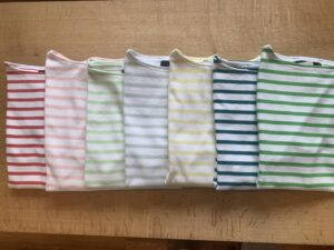 今回着用しているピンクのボーダーはウエッソンルーズ!オーバーサイズのセントジェームスが登場しました。写真のカラフルな春色達は定番のウェッソンとなります。