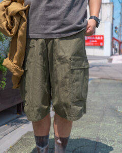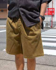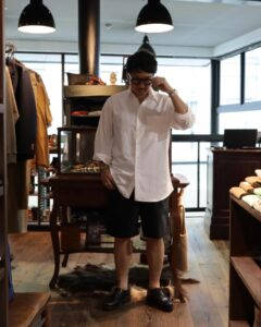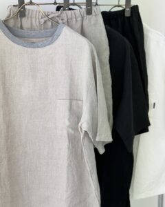 Tシャツ、ショーツ共に軽くて、サラリとした着心地。フレンチリネン素材は通気性が高く、着るほど馴染みがよく出てくるのも特徴の1つです。