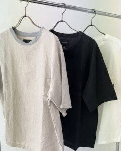 リネンTシャツは上質なフレンチリネンを100%使用したオーバーサイズポケットTシャツです。肌触りがよく、サラッとした着心地で吸水性、速乾性に優れたリネンTシャツはまさにこれからの季節のマストアイテムです😆