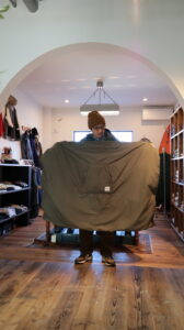本日おすすめのアイテムは、寒さが本格化するこれからの季節にぜひ取り入れていただきたい Battenwear × Nanga のキャンピングポンチョです。