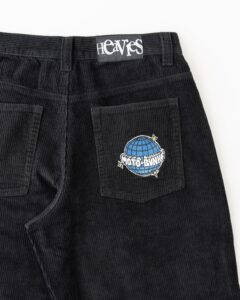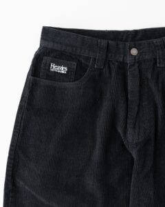最新のトレンドを取り入れたシルエットが最大の特徴となり、ポケットには「Heavies」と「MOTO-BUNKA」のコラボロゴ、バックポケットにはMOTO-BUNKAのアイコンロゴが大きく刺繍され、ボタンもHEAVIESオリジナルの刻印入りのものを使用した完全オリジナルコーデュロイパンツです。