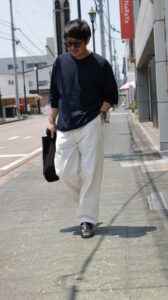 ツイルの立体感とドライな風合いが特徴で、キレイな落ち感も魅力。