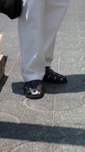 シンプルながらも存在感のある、上品なレザーサンダル。