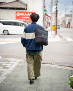 ブラックカラーは全体を引き締め、都会的な印象に。丈夫なコットンツイル生地なので、長く穿き込んで育てていけるのも楽しみのひとつ。