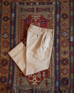素材は当時と同じ コットンコーデュロイ。着込むほどに畝がつぶれ、色も抜けていくことで独特の味わいが出てきます。胸元のチェーンステッチや小ぶりな襟など、ヴィンテージらしい雰囲気を持ちながら、シルエットは現代風にアップデートされているので普段使いしやすいのも魅力です。