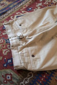 股上は深く、ゆったりとしたワイドシルエットですが、裾にかけて自然にテーパードするので野暮ったさはなく、合わせやすい一本です。